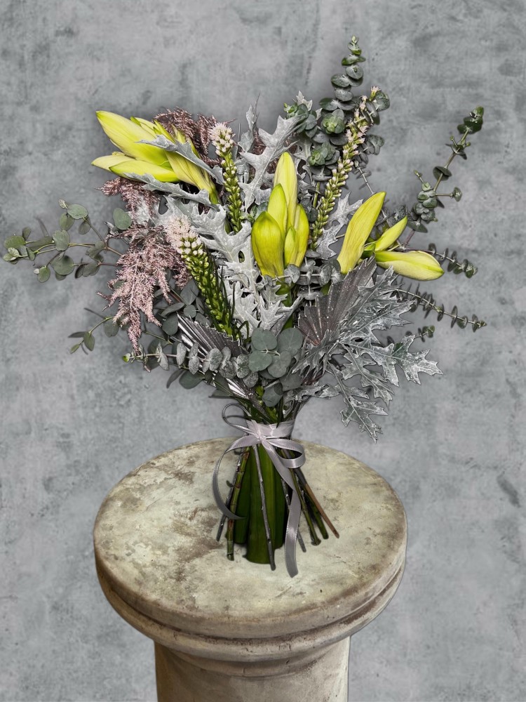 Carefully crafted with lush seasonal greenery to complement the pure, snowy blooms, Snowfall Elegance is designed to illuminate any space with its graceful charm. Perfect as a luxurious gift or a stunning centerpiece, this bouquet brings an air of festive refinement to your celebrations.